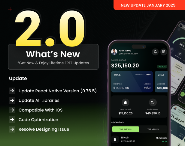 CryptoCraft v2.0 - React Native CLI Cryptocurrency Mobile App Template